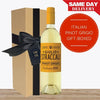 Captivate with Italian Pinot Grigio, elegantly wrapped for gifting. This delightful white wine, complemented by a personalized gift card, embodies Italy's finesse for any celebration.This gifting experience encapsulates the essence of Italian craftsmanship, making it a thoughtful and refined gesture for those who appreciate the finer things in life.